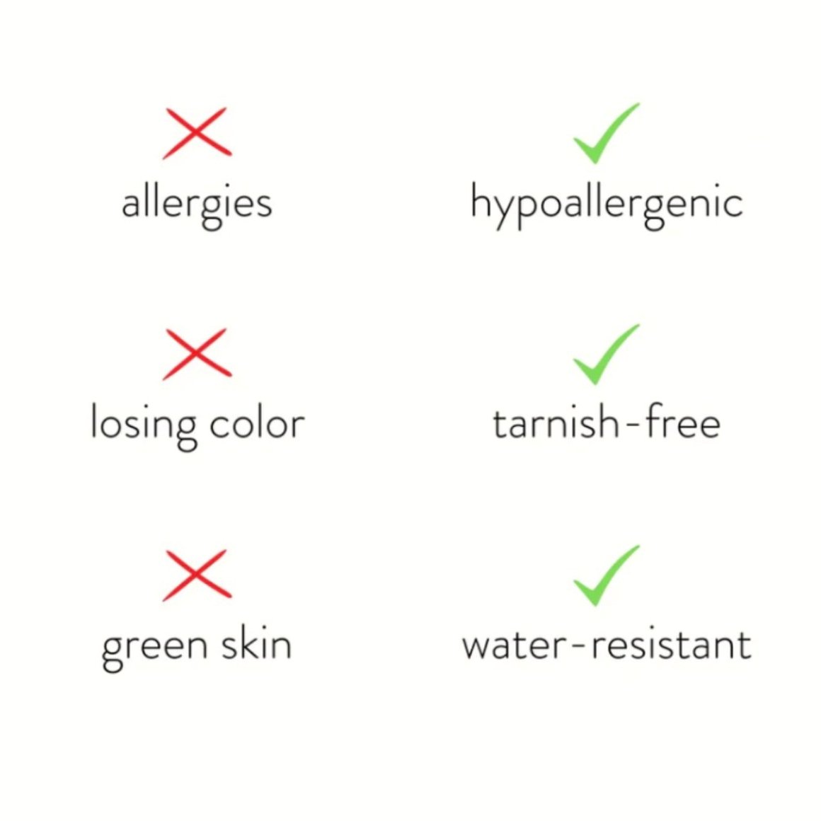 Made with waterproof stainless steel, you never need to worry about fading or tarnishing jewelry ever again.