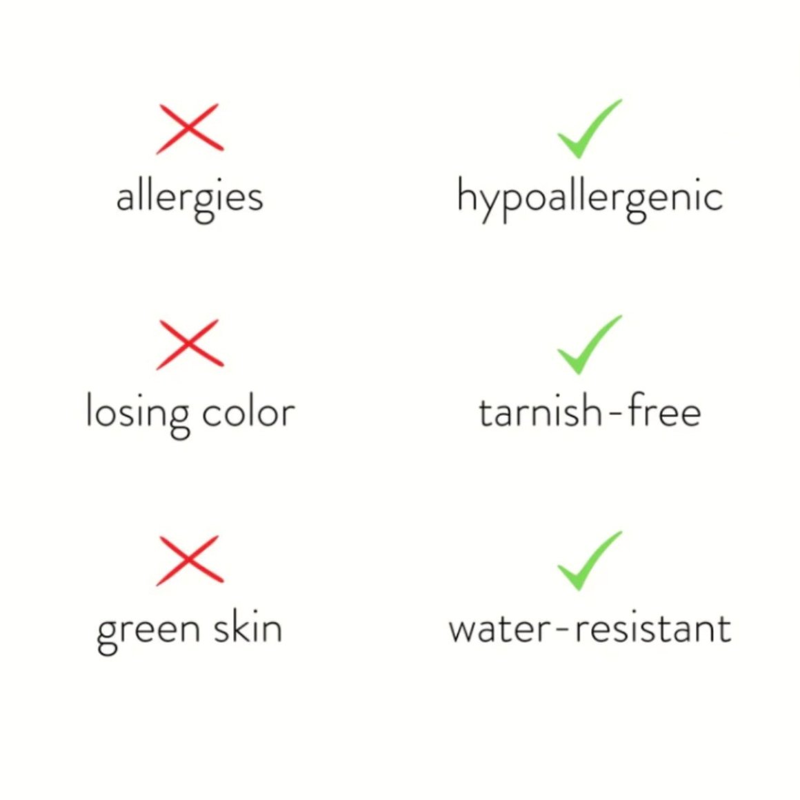 Made with waterproof stainless steel, you never need to worry about fading or tarnishing jewelry ever again.